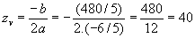 Como queremos determinar os valores de x, y e z (veja figura acima) para que a área seja máxima, vamos começar determinando o valor de z para que S seja máxima, ou seja, calcular o zv (coordenada do vértice) da função S = (- 6/5) z2 + (480/5) z.