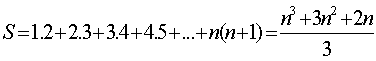 o valor da soma S = 1.2 + 2.3 + 3.4 + 4.5 + 5.6 + 6.7 + ... + n.(n