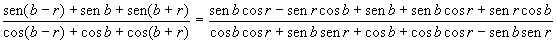 Portanto, a PA (a, b, c) pode ser reescrita como: (b - r , b, b + r).Substituindo na expressão dada a por b - r e c por b + r e desenvolvendo as somas e diferenças de senos e cosenos que aparecem, vem: