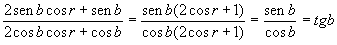 Observando os termos simétricos (- senrcosb e + senrcosb) e (+senbsenr e -senbsenr), cancelando-os, e fatorando convenientemente, a expressão acima ficará: