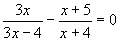 3x(x+4) = (3x-4)(x+5), já que o segundo membro é nulo.