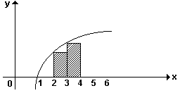Observe que o primeiro retângulo possui medida da base igual a 3 - 2 = 1 e altura igual a log 2. Analogamente, o segundo retângulo possui a medida da base igual a