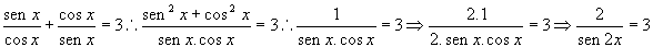 Portanto, 2 = 3.sen2x e daí conclui-se que sen2x = 2/3.