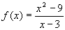 Observe que para x = 3, a função não é definida. Entretanto, lembrando que x2 - 9 = (x + 3) (x - 3), substituindo e simplificando, a função fica igual a