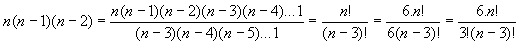 Mas, n! / 3!.(n-3)! = Cn,3 \ n(n 1)(n 2) = 6.Cn,3