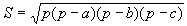 onde p é o semiperímetro do triângulo ou seja: p = (a+b+c) / 2