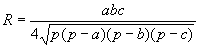 Assim, substituindo o valor de S da fórmula anterior, na fórmula S=abc/4R, encontraremos uma fórmula útil para o cálculo do raio da circunferência circunscrita a um triângulo qualquer de lados a, b e c:
