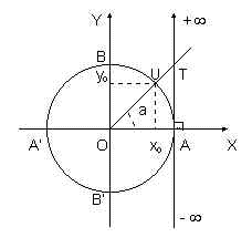 mas como y0 = sen a, x0 = cos a, AT = tg a e OA = 1, vem: