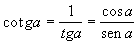 3 - inverso da tangente = cotangente (símbolo: cotg )