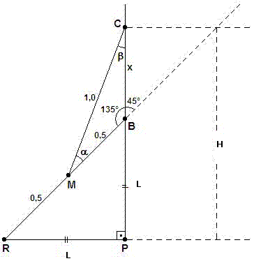 De forma a facilitar a resolução, construímos a figura abaixo onde CP = H e RP = PB = L.