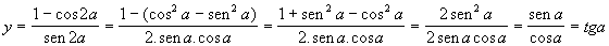 Simplificando, vem: y = (1 - cos2a) / sen2a . Portanto,