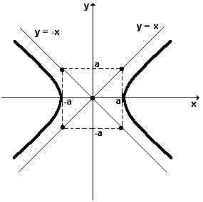 que é a equação reduzida de uma hipérbole equilátera.Veja a seguir, o gráfico de uma hipérbole equilátera x2 y2 = a2 referida ao plano cartesiano xOy: