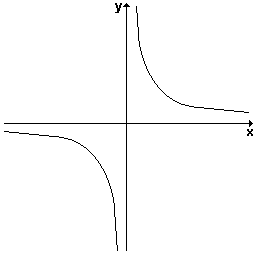 X.Y = a2/2 = K. As assíntotas neste caso, são os eixos coordenados Ox e Oy, ou seja, as retas y = 0 e x = 0, respectivamente.Veja a seguir, exemplo de gráfico da hipérbole equilátera x.y = k, com k > 0, onde os eixos coordenados Ox e Oy são as assíntotas.