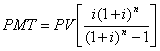 - o fator entre colchetes é denominado Fator de recuperação de capital - FRC(i,n).