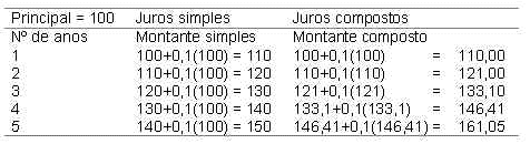 Vamos ilustrar a diferença entre os crescimentos de um capital através juros simples e juros compostos, com um exemplo: